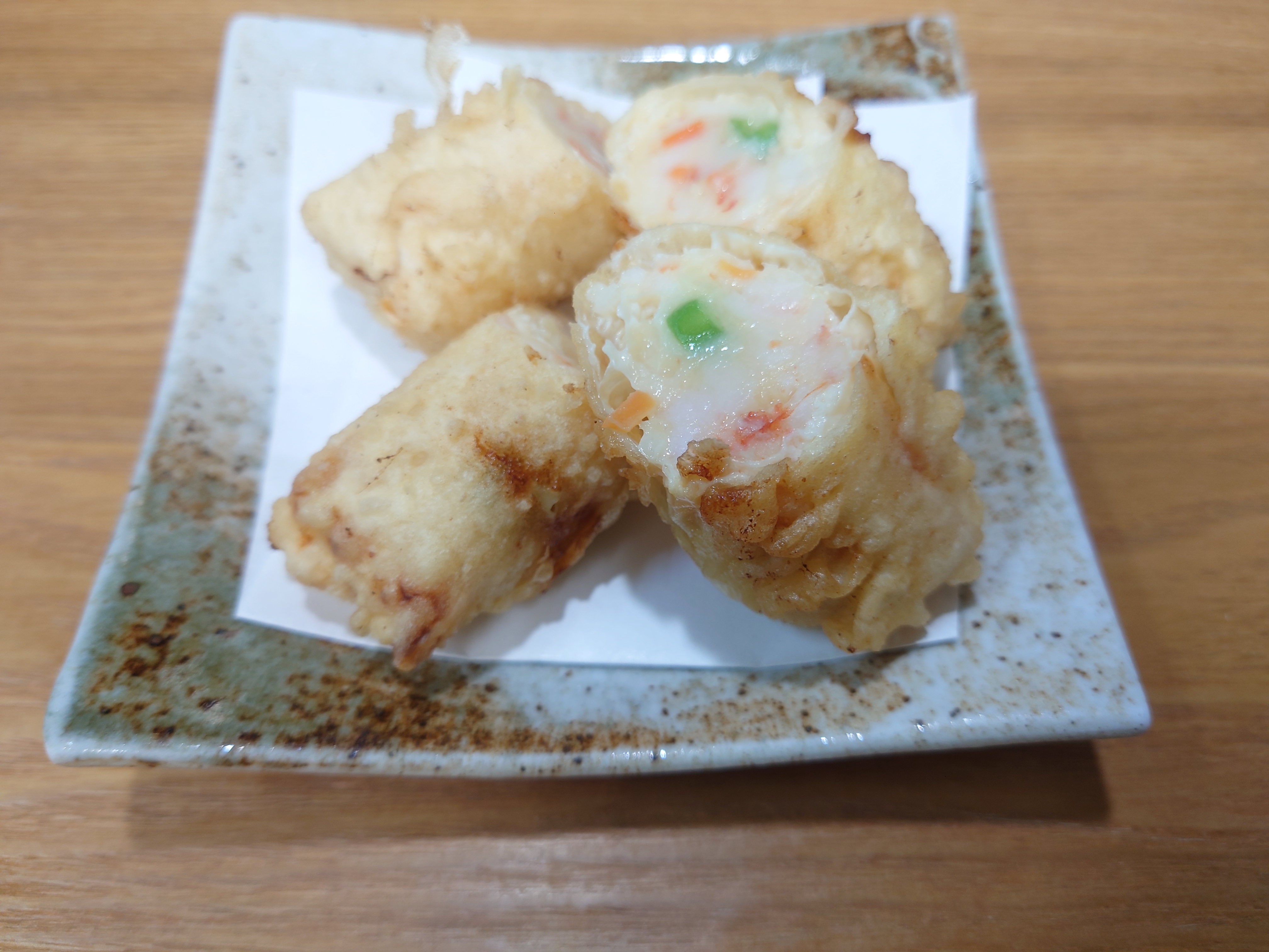 「海老真丈の湯葉巻きチーズ揚げ」